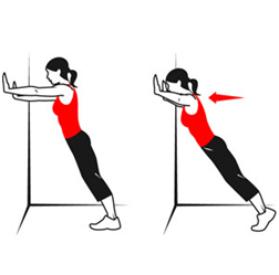 - Wall press-ups: Lean against the wall or a chair to practice the movement without straining the torso.