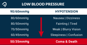Low blood pressure is a reading of less than 90/60mmHg. It does not always cause symptoms, but you may need treatment if it does.