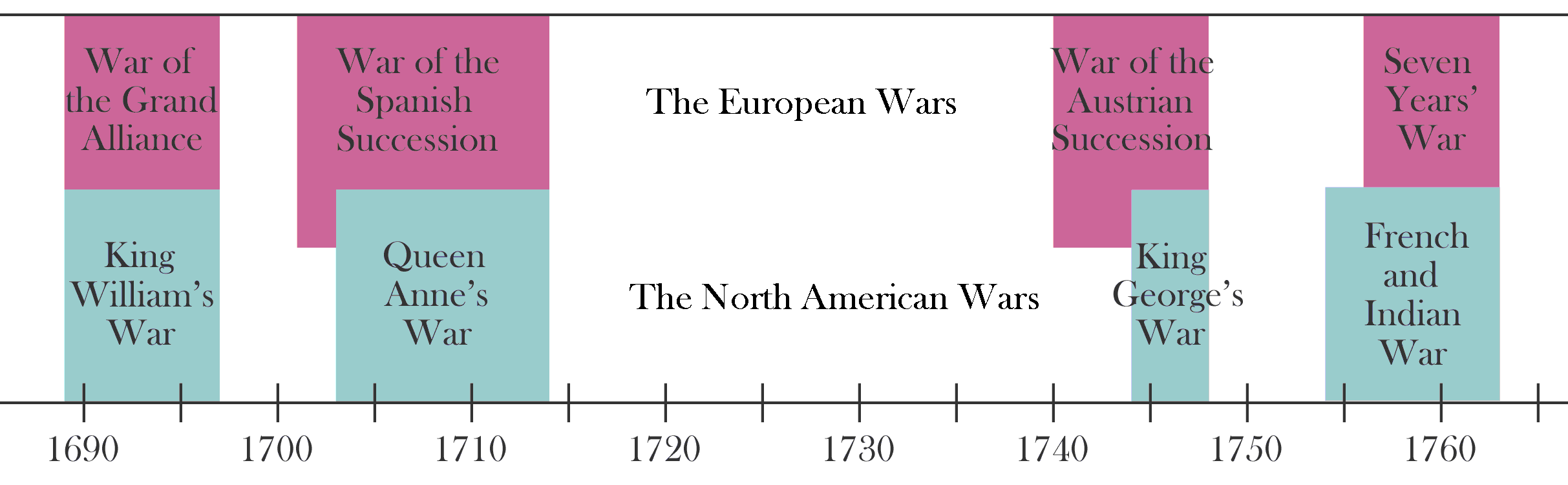 The North American wars, and their associated European wars, in sequence, are outlined below.
