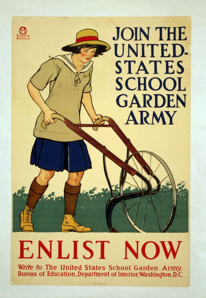 The United States School Garden Army (USSGA), was founded by the Bureau of Education in 1917 during the administration of President Wooodrow Wilson’s.