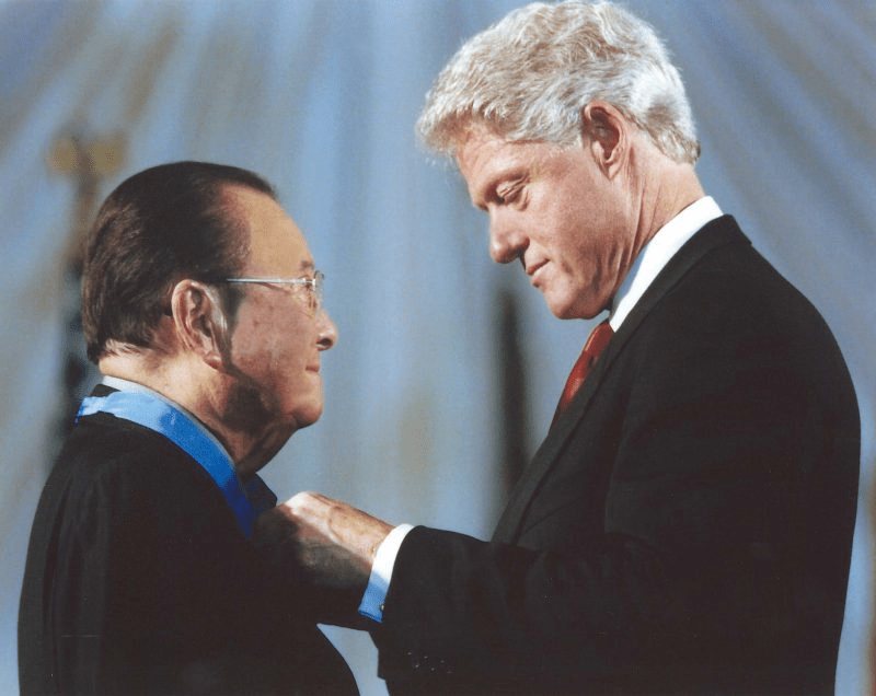 Inouye was honourably discharged with the rank of captain in May 1947 after 20 months of rehabilitation. At the time, he was a recipient of the Bronze Star Medal, Distinguished Service Cross, and three Purple Hearts. Many in his regiment believed that, were he not Japanese-American, he would have been awarded the Medal of Honour, the nation’s highest military award. Inouye eventually received the Medal of Honour on 21 June 2000 from President Bill Clinton, along with 19 other Japanese American servicemen in the 442nd.