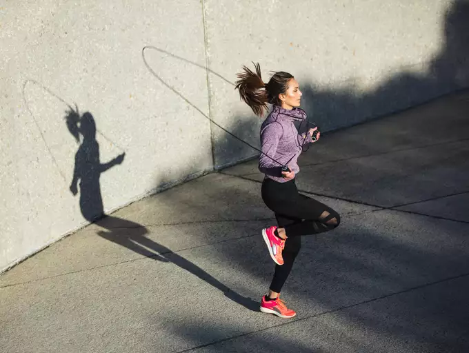 Incorporating the side-to-side jump into your jump rope routine can help improve your coordination, footwork, and lower body strength.