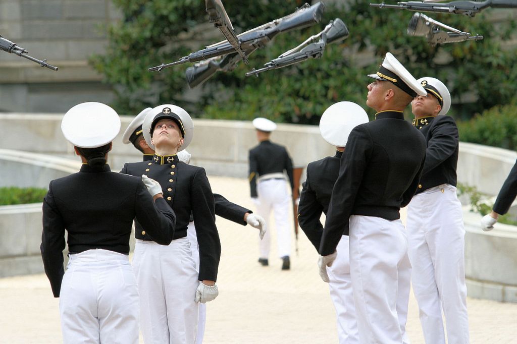 Some high-school level competitions prevent cadets who are participating in armed drill events from performing more dangerous ‘over the head’ spins, or raising cadets off the floor, in the interest of safety.