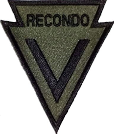 The insignia of the Recondo Schools, which was also worn as a patch on the right pocket of Recondo graduates, was an arrowhead pointing downwards to symbolise assault from the sky to the ground in the colours of black and white to signify operations by day and night. Although each Recondo School had its own insignia and patch, the downward-facing arrowhead and black and white theme remained the same.