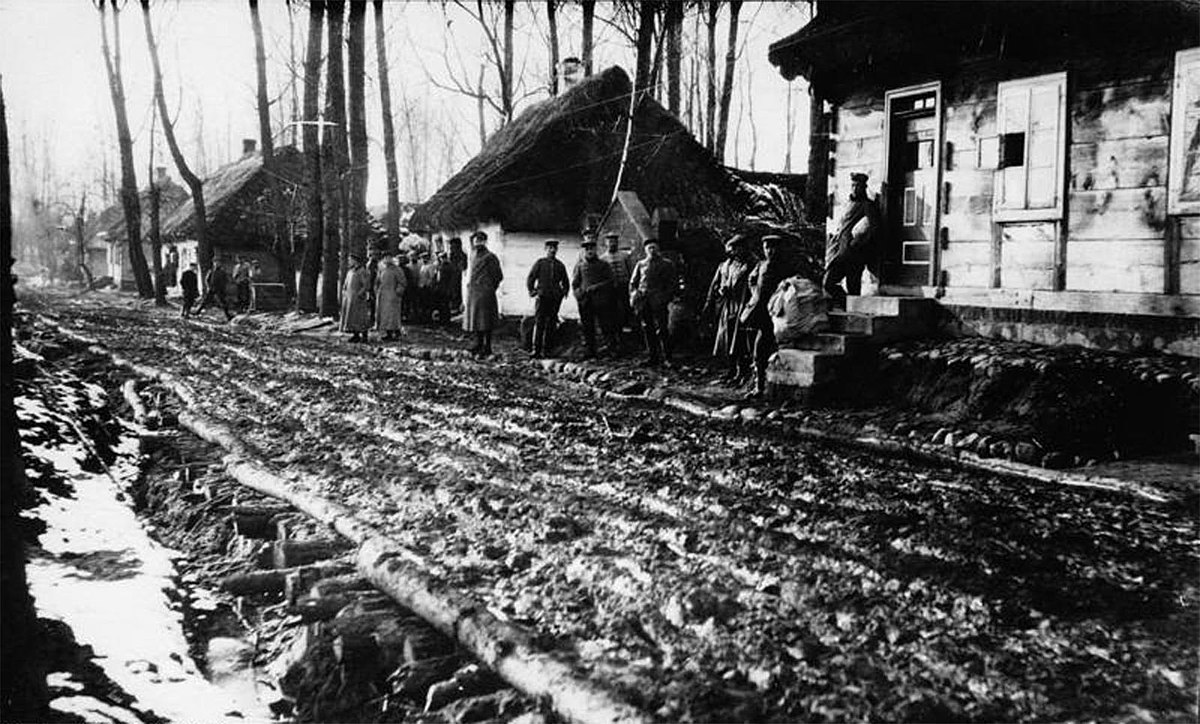 In World War II corduroyed roads were used by both German and Soviet forces on the Eastern Front.