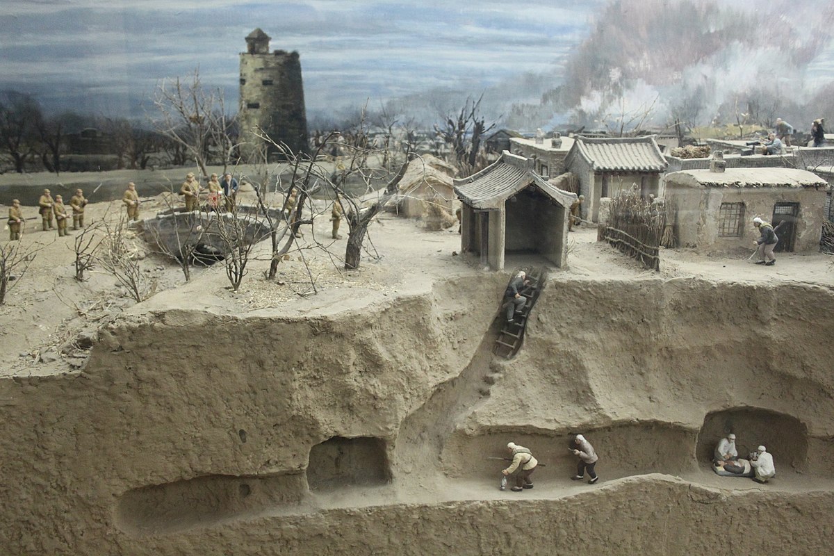 The term tunnel war or tunnel warfare (地道战) was first used for the guerrilla tactic employed by the Chinese in the Second Sino-Japanese War. The tunnel systems were fast and easy to construct and enabled a small force to successfully fight superior enemies. One particular tunnel network called the “Ranzhuang tunnel” evolved in the course of resisting Japanese counterinsurgency operations in Hebei. Particularly, the Chinese Communist forces or local peasant resistance used tunnel war tactics against the Japanese (and later the Kuomintang during Chinese Civil War). The tunnels were dug beneath the earth to cover the battlefield with numerous hidden gun holes to make a surprise attack. Entrances usually were hidden beneath a straw mat inside a house, or down a well. This allowed for flexible manoeuvres or exits.
