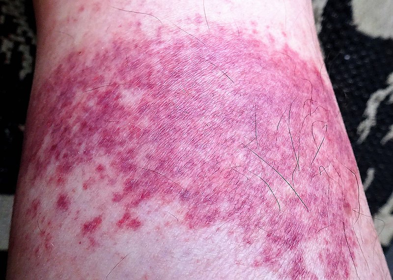 - Rash development: Within 24–28 hours after the triggering event, the characteristic rash becomes apparent. The rash typically starts as small, reddish-purple spots or patches on the lower legs. As the condition progresses, the spots may coalesce into larger, more confluent areas of discoloration.