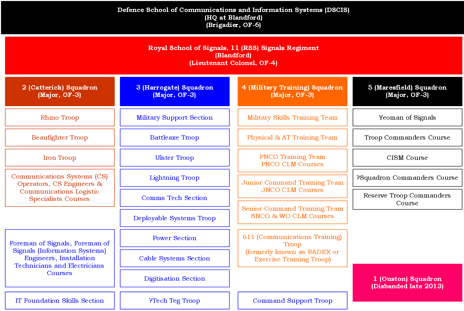 - Defence School of Communications and Information Systems (DSCIS) with the school HQ at Blandford.