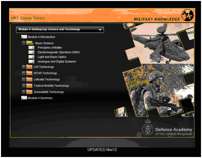 With this in mind, the MK courses have been developed for the British Army by the Military Knowledge Office (MKO) at the Defence Academy of the United (DAUK) College of Management and Technology (CMT), in conjunction with Cranfield University.