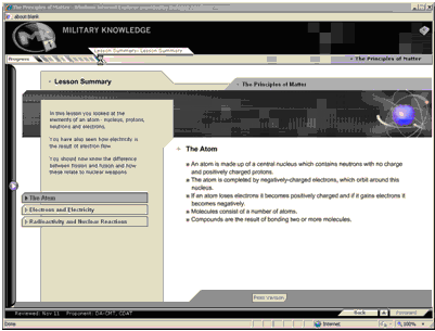 The MKO includes military authors and project managers, who are responsible for delivering updated courseware through the Cranfield University design and programming team. The MK courses are hosted on the Defence Learning Portal (the British Army’s Virtual Learning Environment (VLE)).