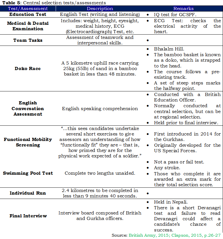The recruitment and selection, and training, of Gurkhas can be simplified into five stages, as outlined in Table 2 below.