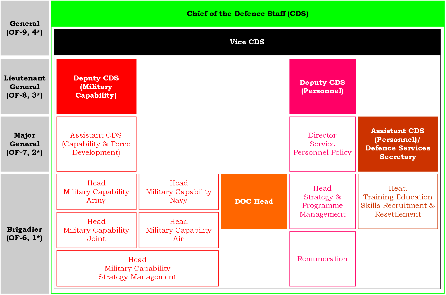 The Head Military Capability Strategy Management, an OF-6 level officer, is responsible for overall capability coherence, force structure and performance management.